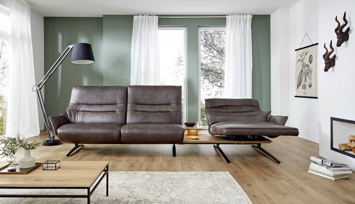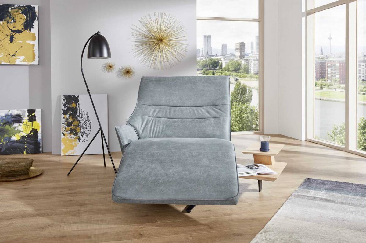 Gemütlich sitzen oder liegen und bequem Ihr Handy aufladen: Lounger FLÜELA macht es möglich. Entscheiden Sie sich ganz nach Bedarf für ein Einzelsofa, eine schicke Trapezlösung oder ein Ecksofa. Auch als freistehende Recamiere mit Tisch ist dieses hochwertige Funktionsmöbel in moderner Optik erhältlich. Für flexiblen Sitzkomfort sorgen die drehbaren Sitzfelder. Sie sind bis zu 20° nach rechts und links schwenkbar. Holz-Zwischentische mit Beleuchtung, induktiver Ladestation, USB-Anschluss und integrierter Steckdose stellen weitere Highlights dar. Dadurch können Sie und Ihre Geräte gleichzeitig wieder "auftanken".