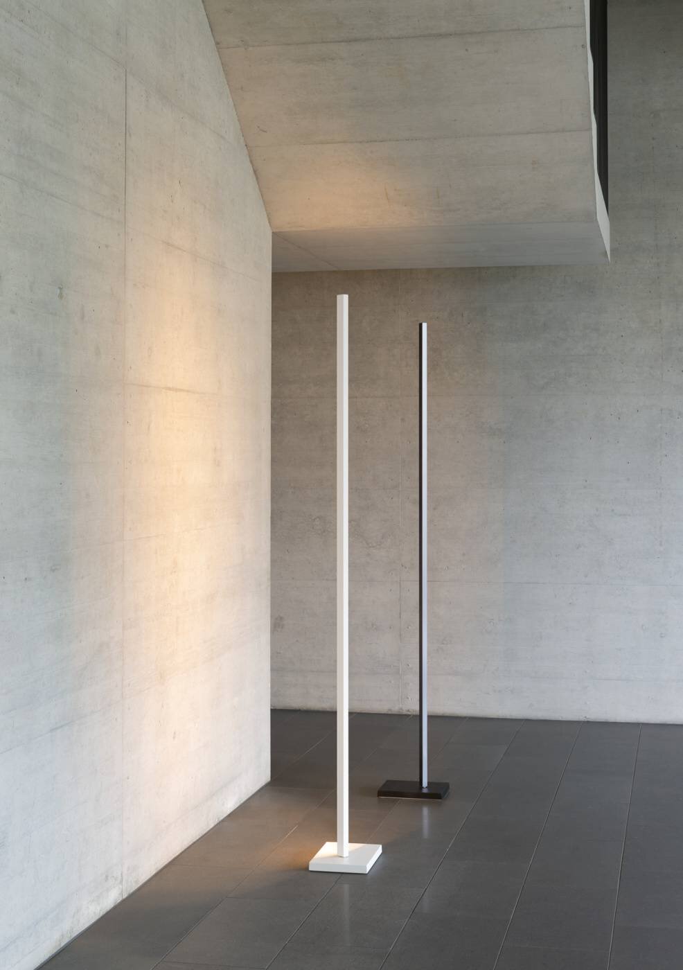 Die Stehleuchte ZEN ist mit ihrem sehr schlichten Design eine besonders effektvolle und energiesparende (A+) Beleuchtungslösung. Mit einer starken (71 W) und verstellbaren indirekten Wandbeleuchtung sind von der allgemeinen Beleuchtung bis zum intimen Stimmungslicht alle Stufen möglich. Dank ihrer Leistungsfähigkeit und Funktionalität passt sich ZEN an verschiedene mehr oder weniger reflektierende Oberflächen aus Beton, Holz oder mit Farbe an. Für die optimale Lichtstreuung im Raum verfügt ZEN über eine optische Linse, die um über 300 Grad gedreht werden kann. Durch ihr ästhetisches Aussehen und ihre Funktionalität eignet sich ZEN sowohl für Wohn- wie auch für Arbeitsräume. Die nach dem Label SWISS MADE ausgeführte Stehleuchte verfügt über einen sehr hohen Qualitätsstandard. Sie wird aus hochwertigen Materialien und elektronischen Komponenten hergestellt, wodurch eine besonders lange Lebensdauer gewährleistet ist. ZEN ist in Weiss (RAL 9016 pulverbeschichtet glatt matt), in einem bronzeton (RAL 7032 pulverbeschichtet glatt matt) und in einer Luxusausführung mit schwarzem Fuss (RAL 9005 pulverbeschichtet glatt matt) und einem anthrazitfarbenen Körper, der sich durch eine Behandlung durch Anodisieren auszeichnet.