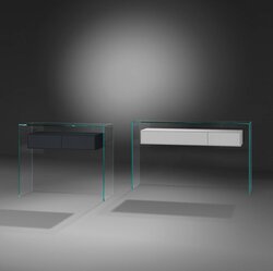 Diese Designer Glaskonsole besticht durch ihre vollkommen geradlinige Form. Das Besondere ist jedoch, dass die Schublade zu fliegen scheint. Denn diese ist nahezu unsichtbar in der klaren Glasrückwand fixiert und somit an optischer Leichtigkeit und Eleganz kaum zu überbieten. Stauraum und eine leichte Reinigung durch optimale Erreichbarkeit aller Flächen machen dieses Designerstück zu einem echten Wunschmöbel. Passend zur Farbgestaltung des Raumes kann das Schubladenelement dieser Glaskonsole mit integrierter Push/Pull Funktion dabei neben Eiche und Nussbaum auch in MDF lackiert bestellt werden.
