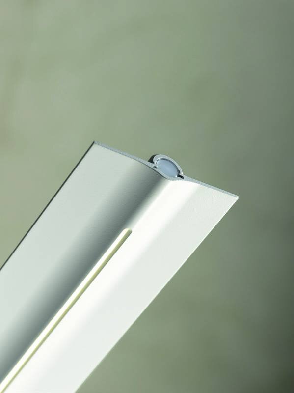 VERSO ist weiss (RAL 9010) pulverbeschichtet (Ref. 008.1) oder gebürstet und grau eloxiert erhältlich.