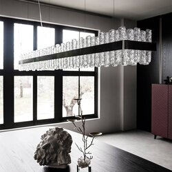 Deckenleuchte mit Gestell aus Nickel-Nickel-Stahl und handgefertigten Glaselementen. Ausführung LED.