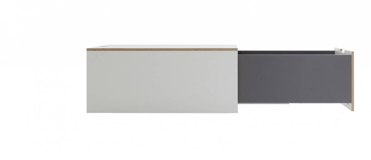 Der Schubkasten ist mit einer soft-close Mechanik ausgestattet. Über den gedämpften Einzug hinaus verfügen der Schubkasten so auch über einen Vollauszug.