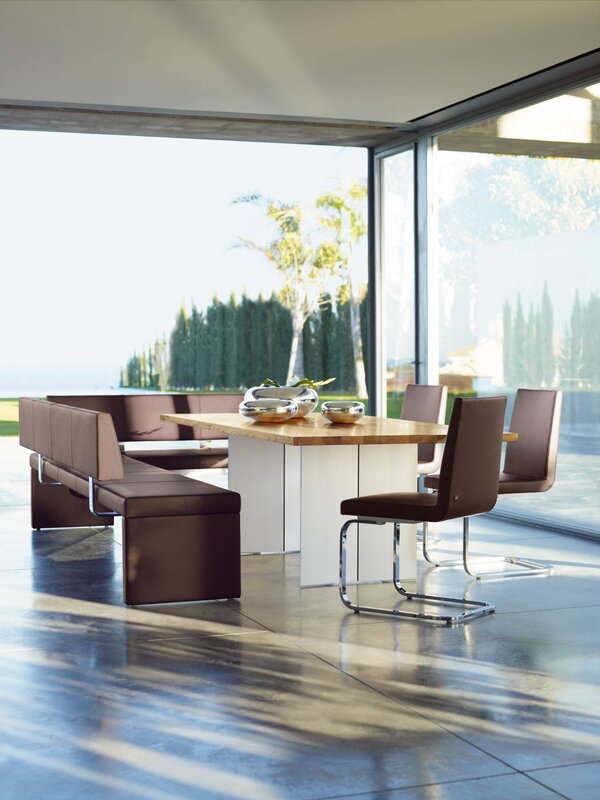 Mit Rolf Benz 620 bieten wir Ihnen vom Stuhl über die (Eck-)Bank bis zum Barstuhl individuelle Lösungen für Sitzmöbel an Esstisch und Tresen. Den Stuhl stellen Sie sich ganz nach Ihrem Geschmack, Ihren ergonomischen Vorlieben und Ihren räumlichen Gegebenheiten zusammen. Er ist in zwei Rückenhöhen, als Freischwinger mit Rund- oder Rechteckrohr erhältlich – passend zu Ihrer Einrichtung jeweils in Chrom matt oder glänzend.
