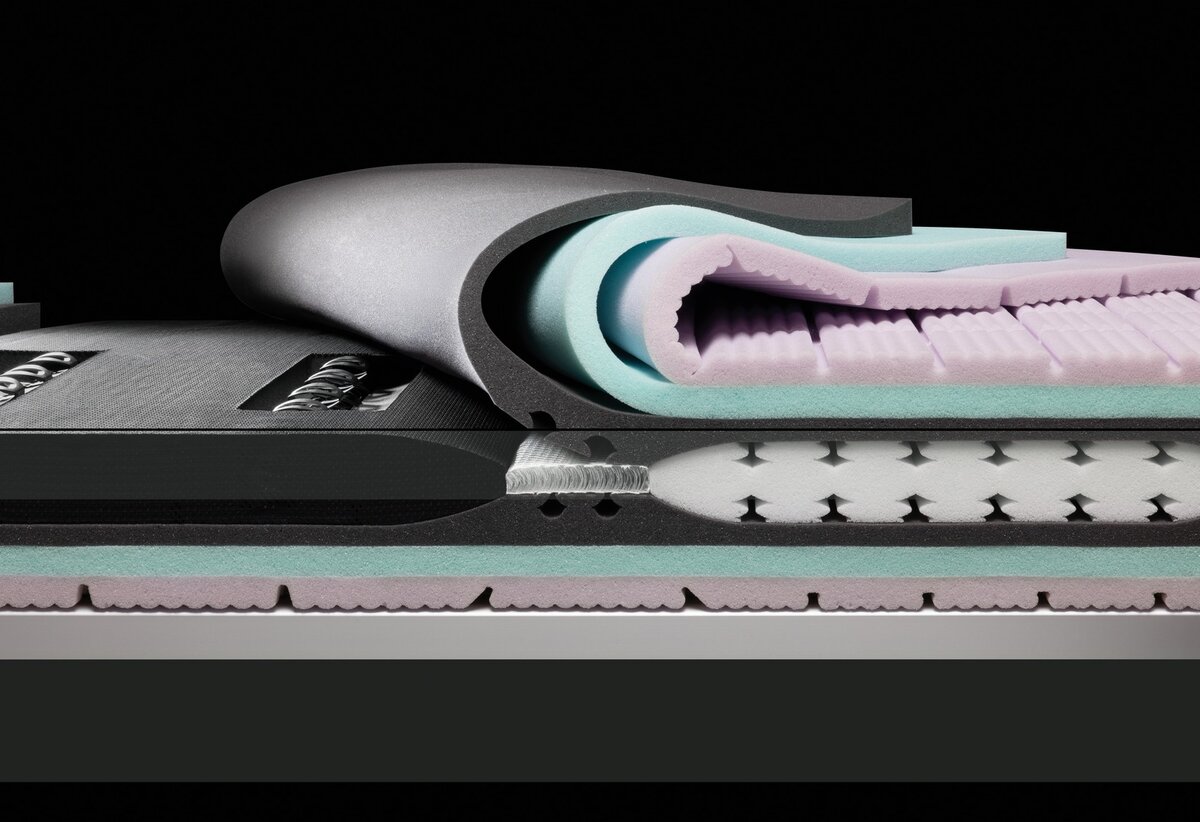 Schwerelos schlafen dank der Rückenmatratze SuperFlow. Ihr futuristisches Design und die revolutionäre Materialisierung schaffen ein Gefühl des Befreitseins und von grenzenloser Leichtigkeit.