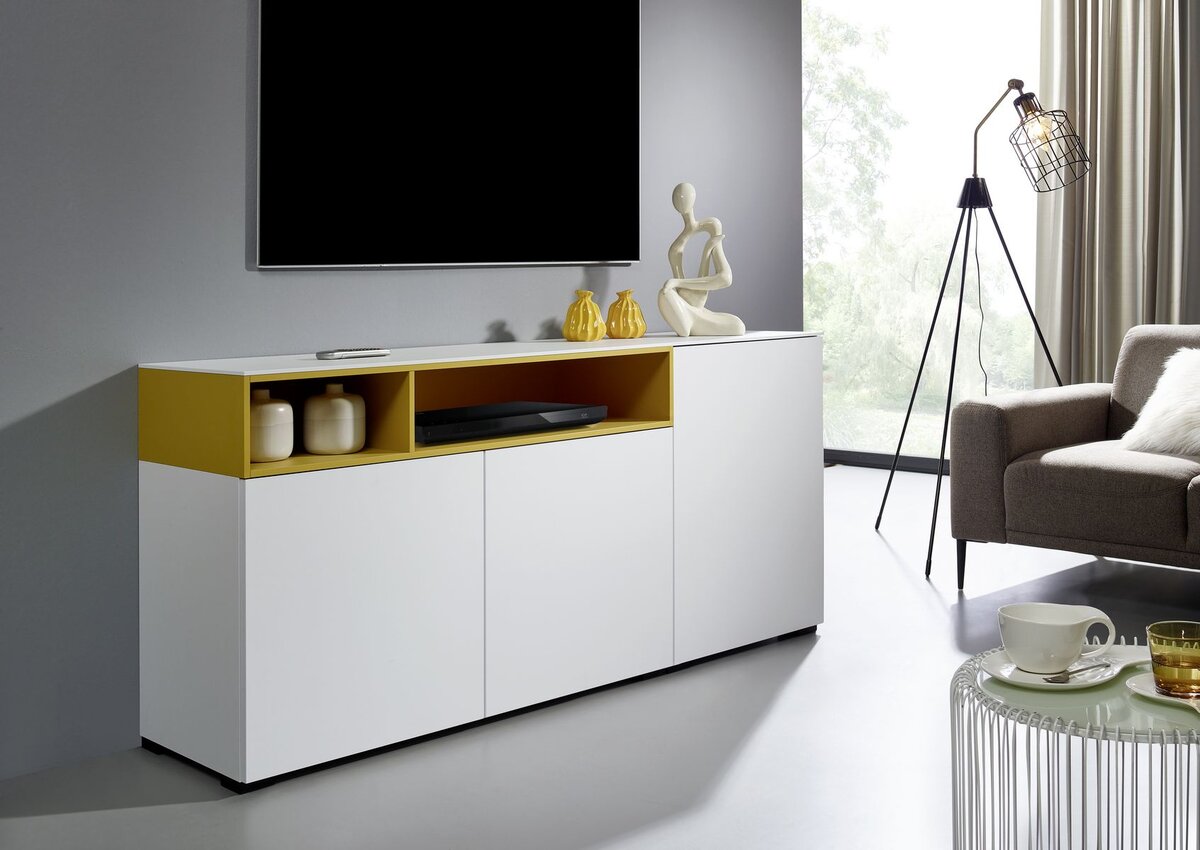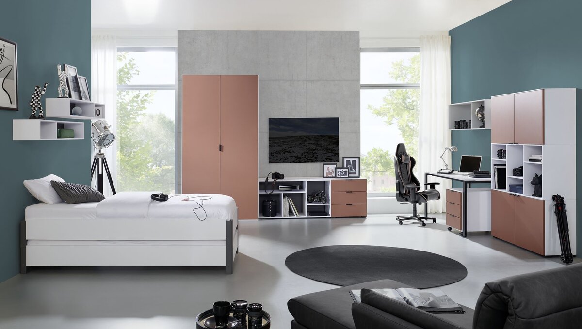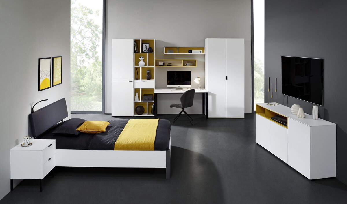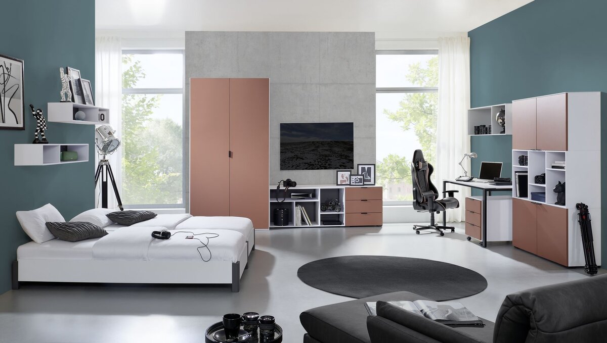 Das Omlin SETUP ist ein umfangreiches Studio-, Wohn- und Schlafzimmerprogramm mit modernen Akzentfarben und vielen Planungsmöglichkeiten.