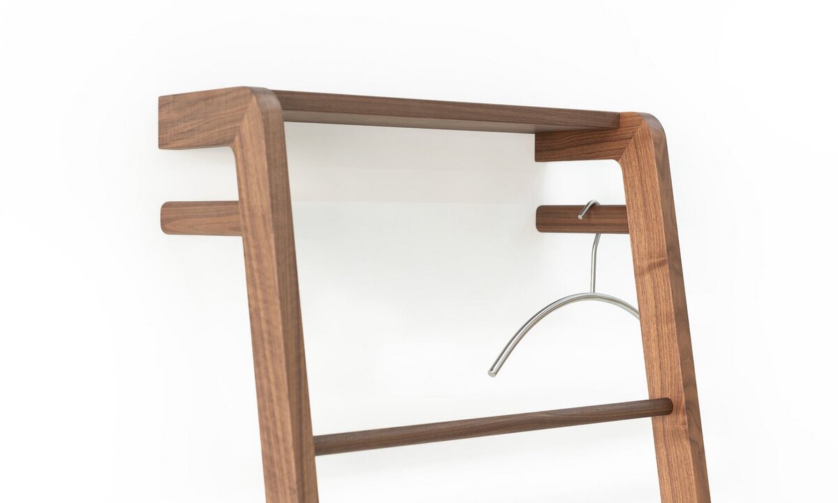 Der Herrendiener neu gedacht: Der IGN. VALET verbindet klares Design mit funktionaler Eleganz. In feinstem Massivholz gefertigt, wird er zum vertrauten Ritualbegleiter im Alltag – bereit, Kleidung und Accessoires stilvoll aufzunehmen. Seine klare Formensprache spricht leise, aber bestimmt – für Menschen, die das Schöne im Praktischen suchen.